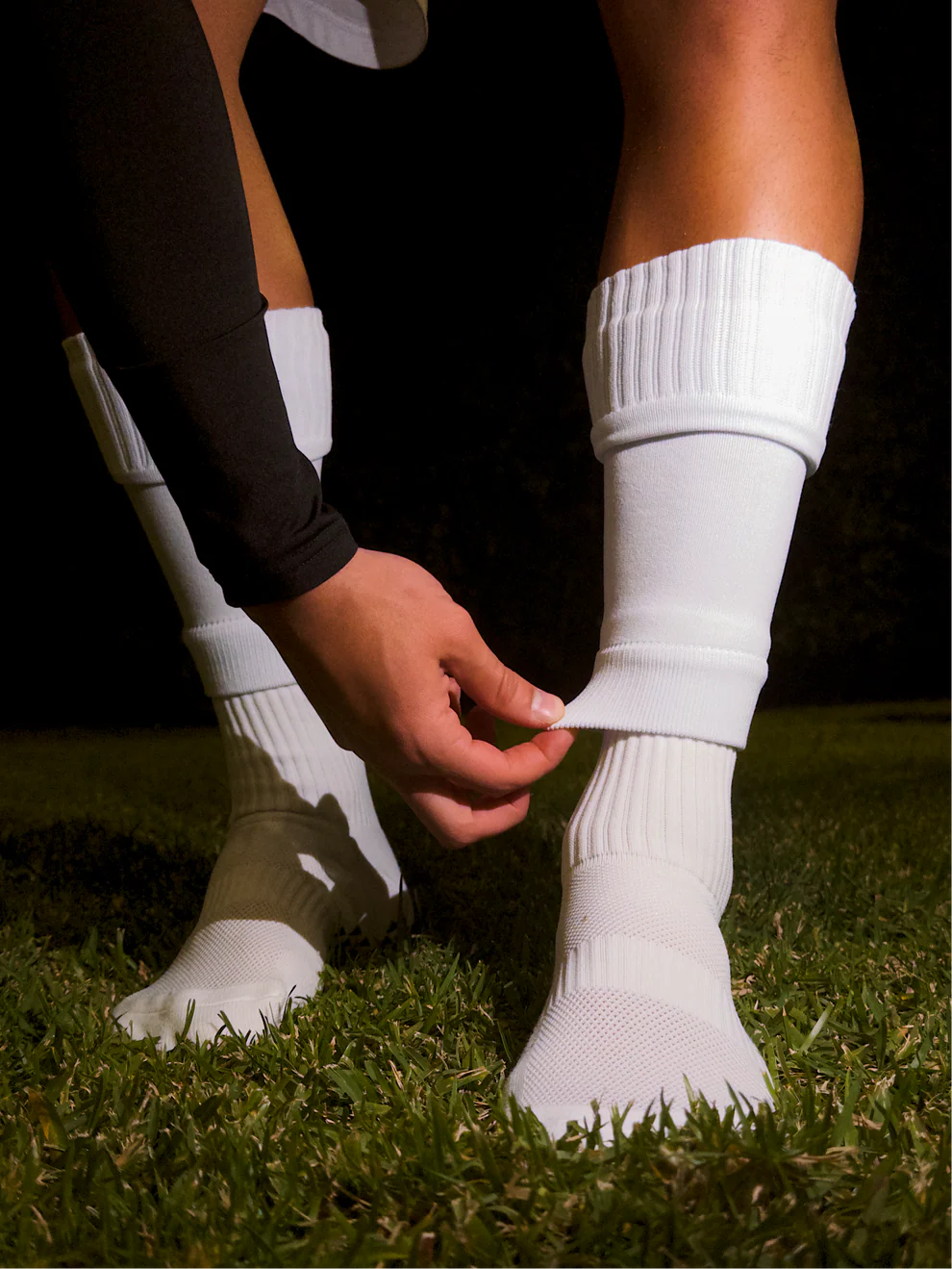 White Pro Cuts pre-cut football socks are engineered to enhance your on-field performance with targeted support and optimal comfort. Designed to seamlessly pair with grip socks, they provide improved stability and traction, helping you maintain peak focus and agility throughout the game. Elevate your play with Pro Cuts.
